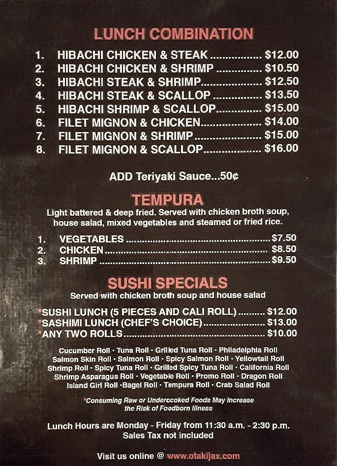 Welcome to Otaki Japanese Steakhouse, a culinary gem nestled in Jacksonville, FL. This restaurant seamlessly blends the art of Japanese cooking with a rich steakhouse experience. From the moment you step in, the inviting atmosphere sets the stage for a delightful dining journey.